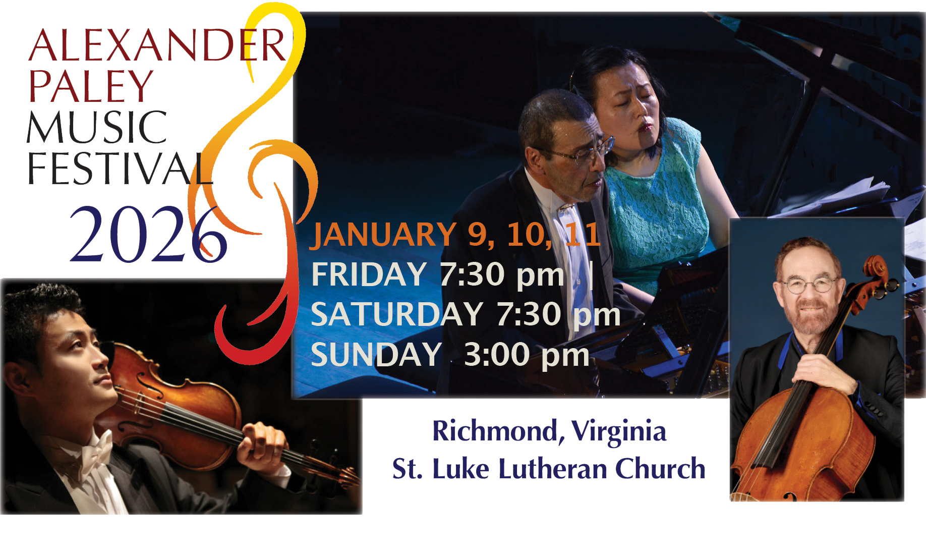 In 2026, as in the 2025 Festival, Alexander Paley will be joined by pianist Peiwen Chen and Richmond Symphony Orchestra principal violinist Daisuke Yamamoto and principal cellist Neal Cary.